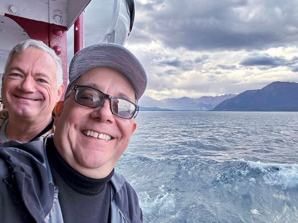 Mt. Cook, tallest of the Southern Alps.Andrew and the Alps.Pizza and pinot at Carrick Winery.Andrew checks in. Check the view…The room view wasn’t bad, either.On board the TSS Earnslaw.One of the last operating steam boats.The sheep.The dog.The demo.Heading back to Queenstown.