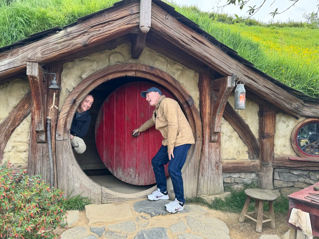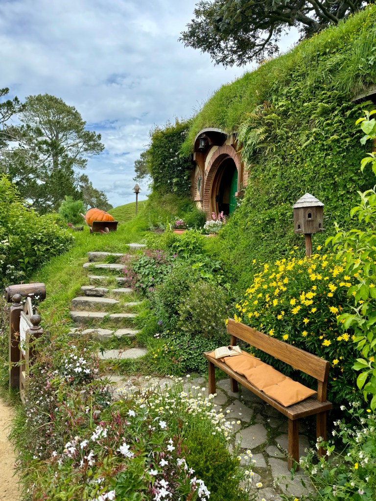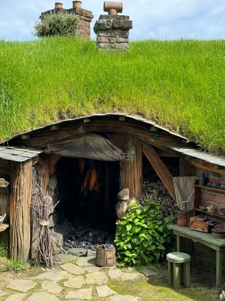 Never late.This is your first view of Hobbiton.Those are real herbs.Okay, the bread is fake.Our fall was their springtime.Daisies and details.“Honey, I’m home!”Someone could be at that window.Recognize this place?We know who lived here, right?Ferns, and fruit trees in bloom.This gate was hobbit-sized.Plans for the expansion.The detail outdoes even Disney.Local classified ads?Mill and pond.A pint at the Green Dragon Inn.A Stephen King moment?“A hobbit-hole…means comfort.”